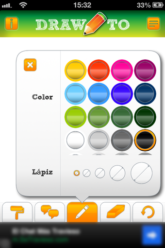 En DrawTo para WhatsApp encontrarás lápices de colores, con una paleta variada, goma de borrar, cinco grosores diferentes para el trazo del lápiz y del borrador y botón Deshacer.